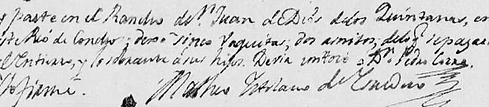 Record of my 5th great grandfather, Pablo Quintana, (actually Pablo Quintanilla) who was killed by Indians in La Hoya. He was married to Maria del Rayo Armendaris (after the death of his first wife, my 5th great grandmother, Maria de la O Melendes). He left many children behind at El Rancho de San Juan de los Quintanas.
